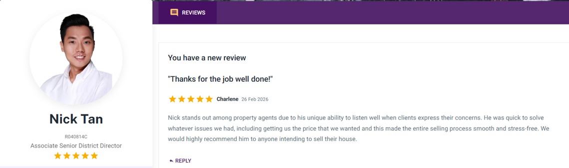 Nick stands out among property agents due to his unique ability to listen well when clients express their concerns. He was quick to solve whatever issues we had, including getting us the price that we wanted and this made the entire selling process smooth and stress-free. We would highly recommend him to anyone intending to sell their house.